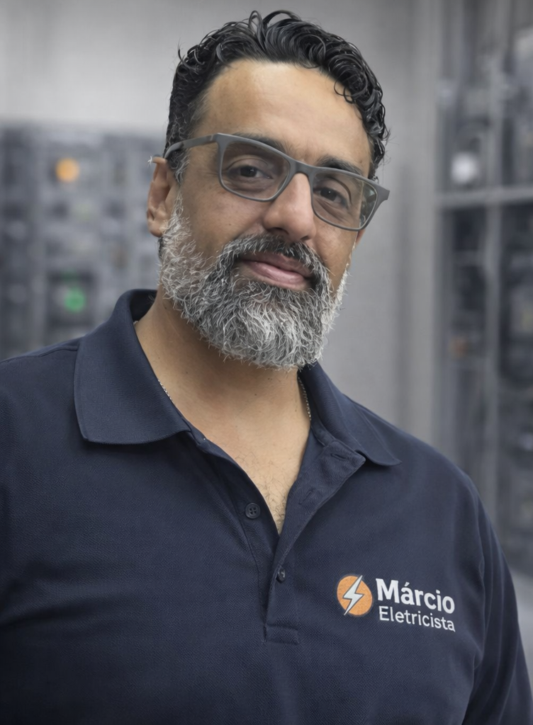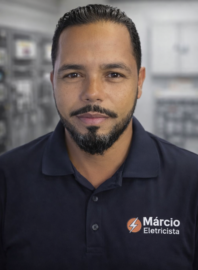 O Márcio Eletricista executa os serviços práticos com experiência e agilidade, enquanto o Engenheiro Eletricista WILSON JOSÉ MAZZA é responsável pelo projeto, cálculos, laudos e emissão da ART.